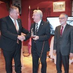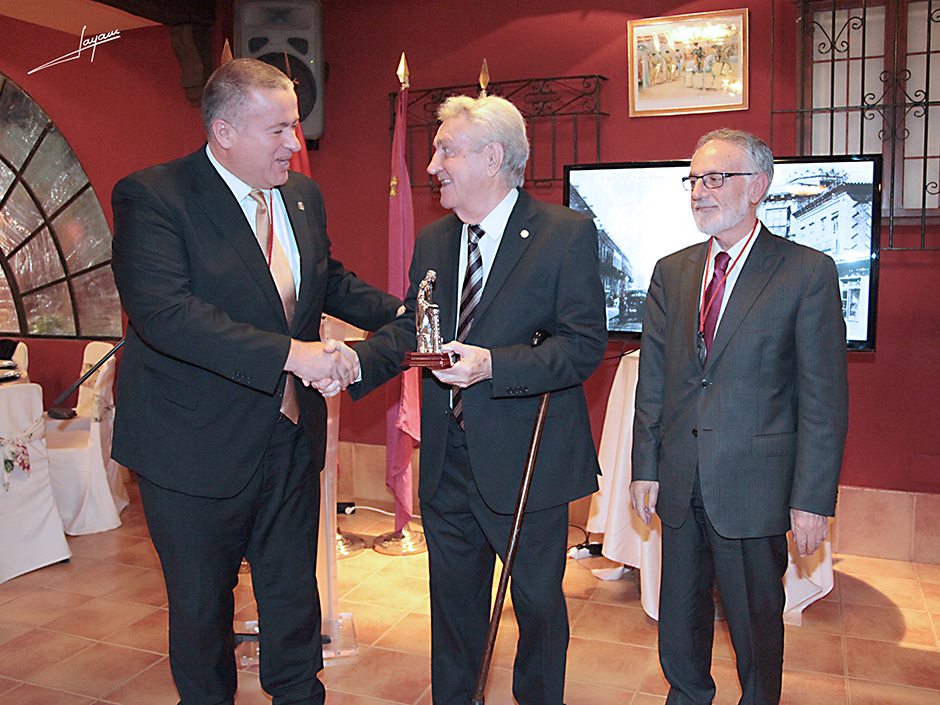 Tras la conferencia, el Presidente de la Asamblea Regional, Francisco Celdrán, y el Alcalde de La Unión, Francisco Bernabé, hicieron entrega a Esteban Bernal Velasco de la imagen de Santa Bárbara, con la que cada año los Caballeros de Santa Bárbara distinguen a una persona o entidad que en su vida siempre estuvo ligada a La Unión y a la minería, requisitos que cumple Esteban, quien como Alcalde fue quien inició el Festival del Cante de las Minas, insignia de La Unión, hoy en su 54 edición llevando el nombre de nuestra ciudad por todo el mundo.