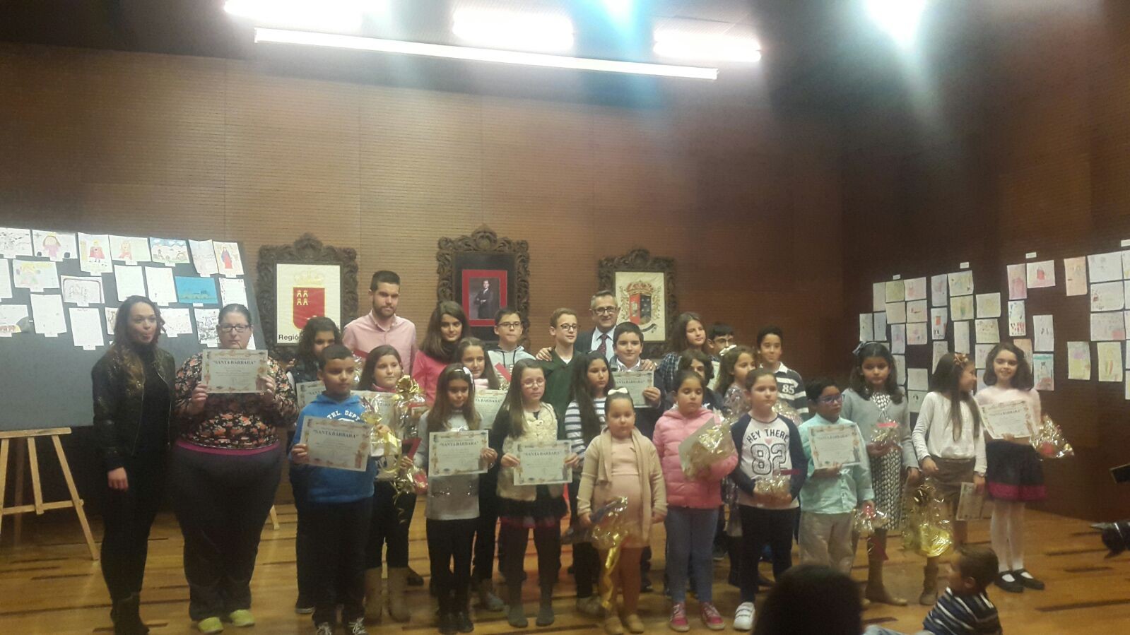 El Salón de Plenos del Ayuntamiento se ha llenado esta tarde con un numeroso grupo de niños de los Colegios del Municipio, para recoger sus premios de la Festividad de Santa Bárbara, ya que desde la Concejalía de Festejos se ha organizado un concurso de poesía, redacción y pintura con el tema de “Santa Bárbara, Patrona de la Minería”.
