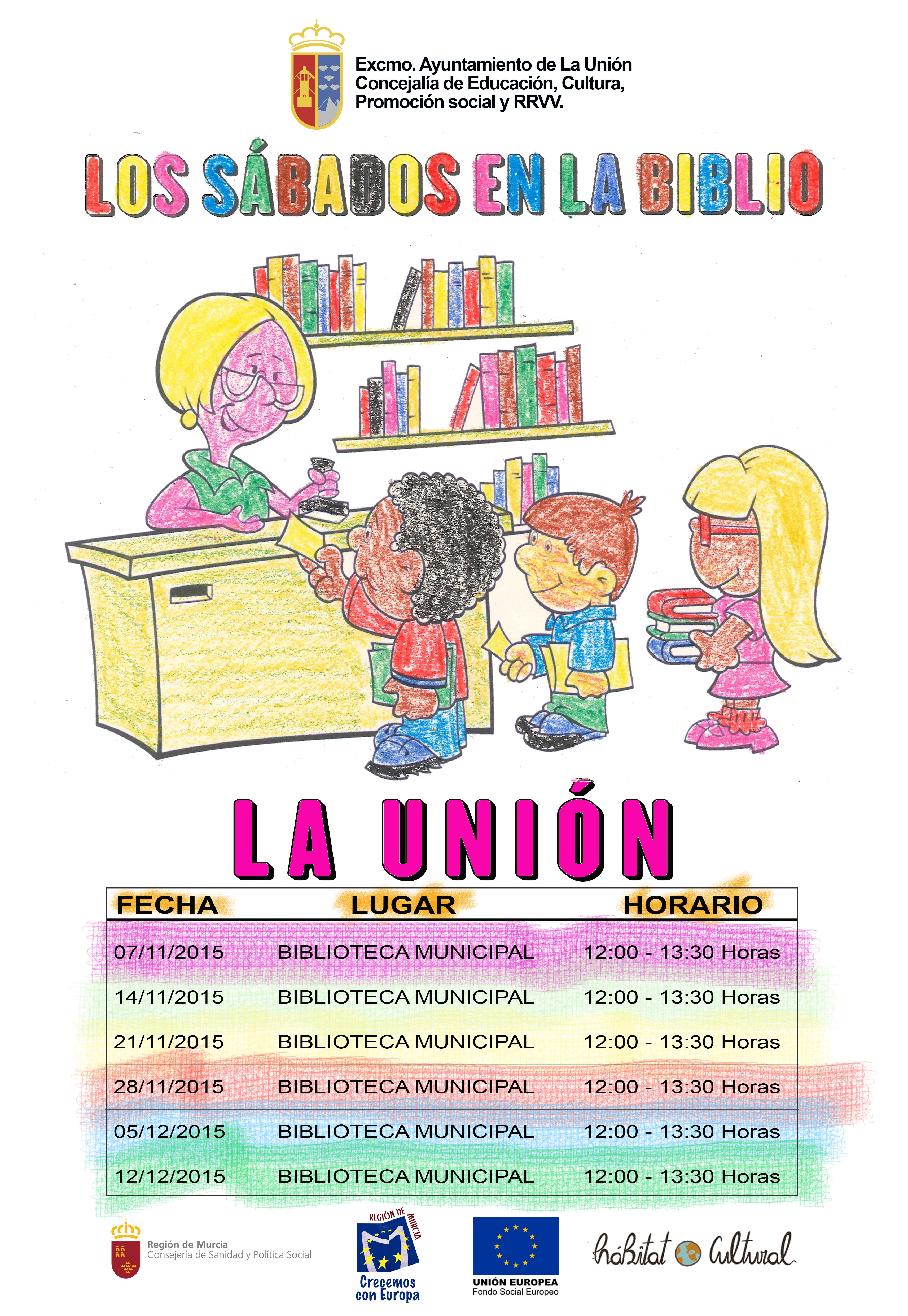 “Los sábados en la Biblio”, como se ha denominado a esta actividad lúdico- cultural, organizada por la Concejalía de Cultura, comenzará a realizarse todos los sábados a partir del próximo 7 de Noviembre hasta el 12 de Diciembre en horario de 12 a 13:30 horas.