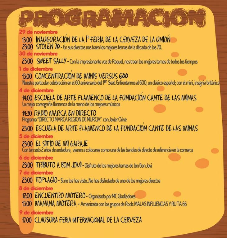 13:00 h. Inauguración de la Feria de la Cerveza de La Unión.