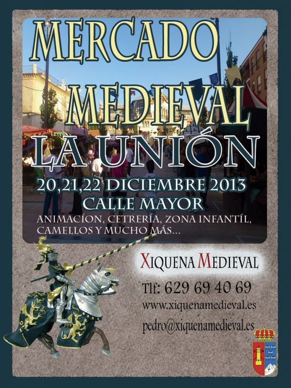 Desde mañana viernes día 20 y hasta el domingo día 22 el centro de la calle Mayor de La Unión acogerá un gran Mercado Medieval, que sin duda hará las delicias de todos los visitantes que deseen disfrutar del mismo.