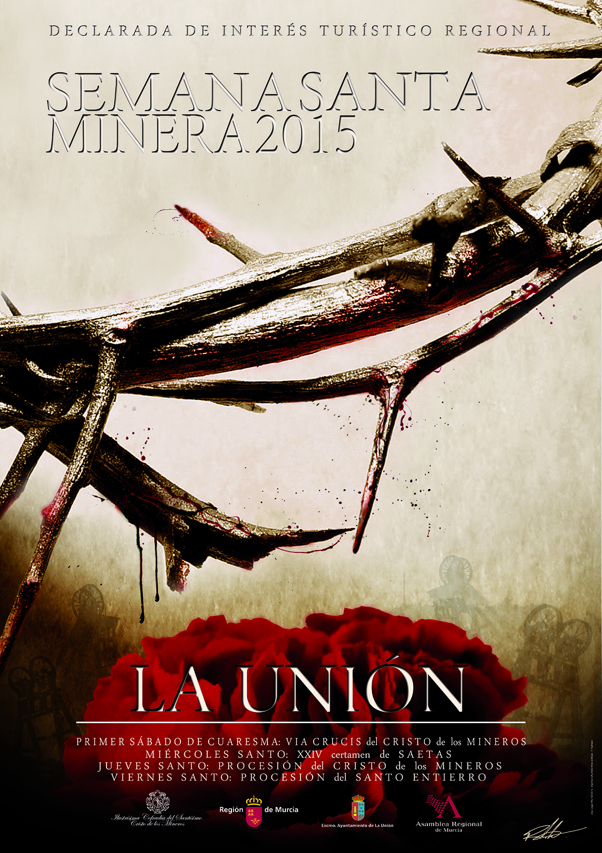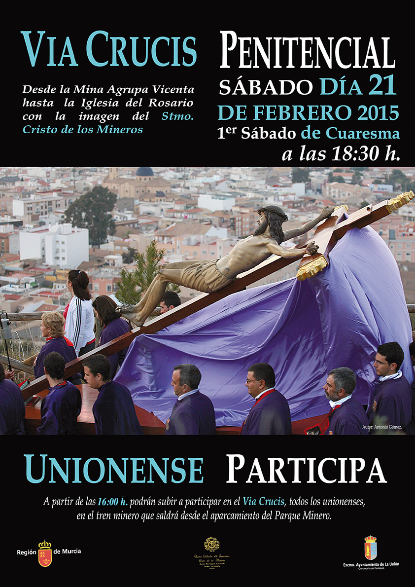 Ya ha confirmado su asistencia el Consejero de Educación, Cultura y Universidades, Pedro Antonio Sánchez, quien presidirá el cortejo en compañía de nuestro Alcalde y del Hermano Mayor de la Cofradía del Cristo de los Mineros, Juan Antonio Pérez, los cuales estarán arropados por los miembros de la Corporación Municipal, de la Mesa de la Cofradía, de las distintas Agrupaciones y de todos los amantes de La Unión y de su Semana Santa Minera en general.