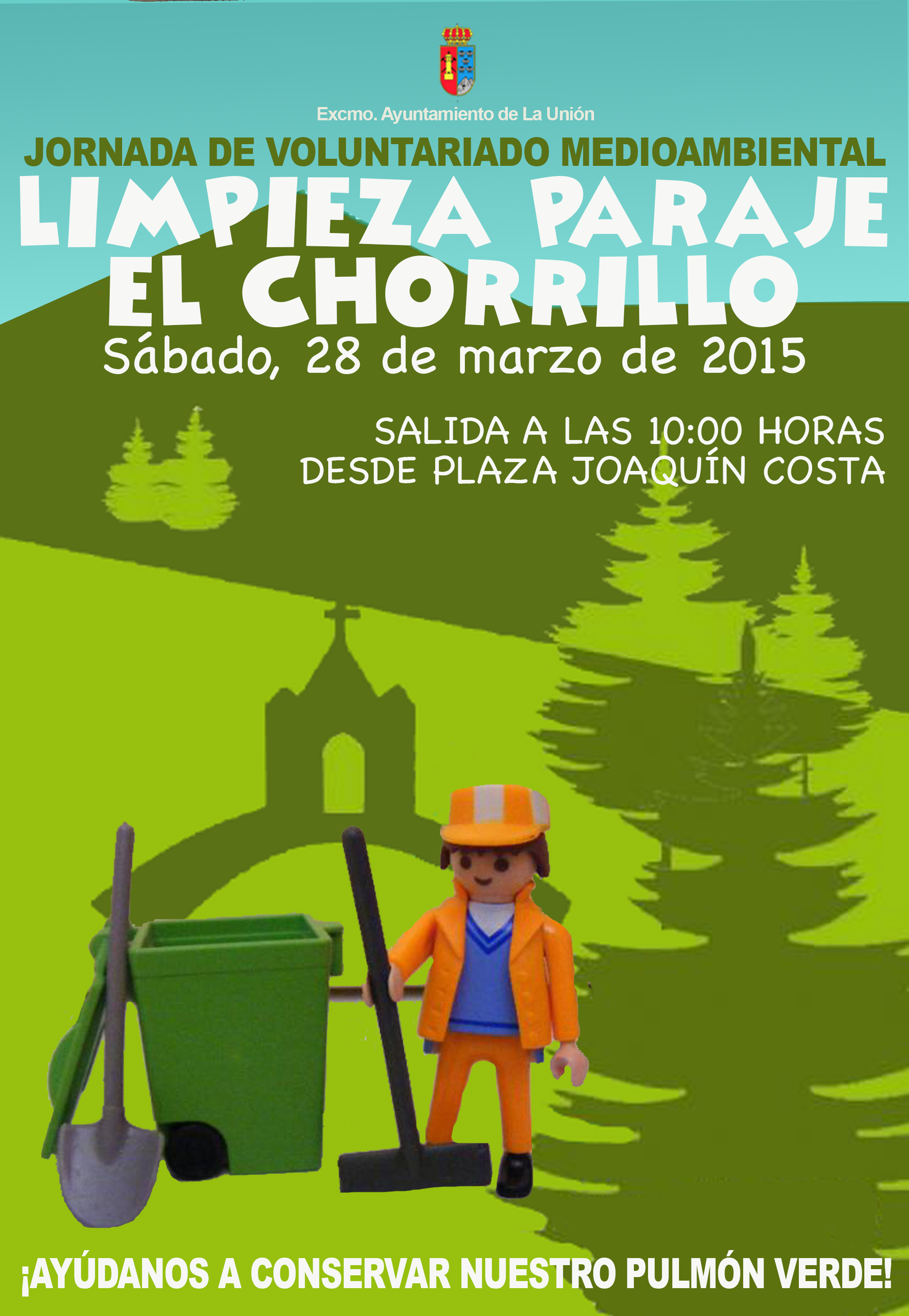 La concentración de salida tendrá lugar a las 10.00 horas en la Plaza Joaquín Costa, frente al Antiguo Mercado Público, desde donde los participantes se desplazarán a pie hasta el pulmón verde de nuestra localidad. Una vez en El Chorrillo, serán repartidos los útiles y herramientas necesarios para llevar a cabo la acción de limpieza.