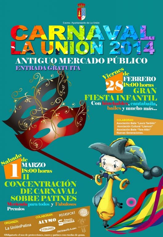 Por su parte, el sábado 1 de marzo, también a partir de las 18.00 horas, tendrá lugar la II Concentración de Carnaval sobre Patines, promovida por la Asociación La Unión Patina, y en la que se invitará a merendar a los niños que asistan con sus patines y habrá premios para los mejores disfraces. Es imprescindible el uso de protecciones, casco y patines con ruedas de goma. Colaboran con esta actividad Alymo, Pistasport, D’Colores, Autoservicio Sánchez, 2001 Sport, PATINenFILA.com y Huerto de la Luz.