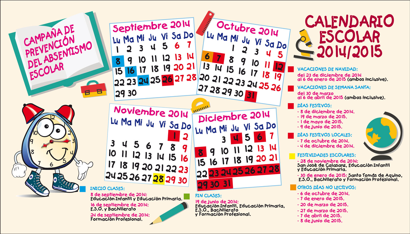Durante el desarrollo del mismo se iba repartiendo a los alumnos un calendario escolar de sobremesa, donde se recogen el inicio y final del curso escolar, los periodos vacacionales, las festividades locales, regionales y nacionales, así como otras fechas destacables.
