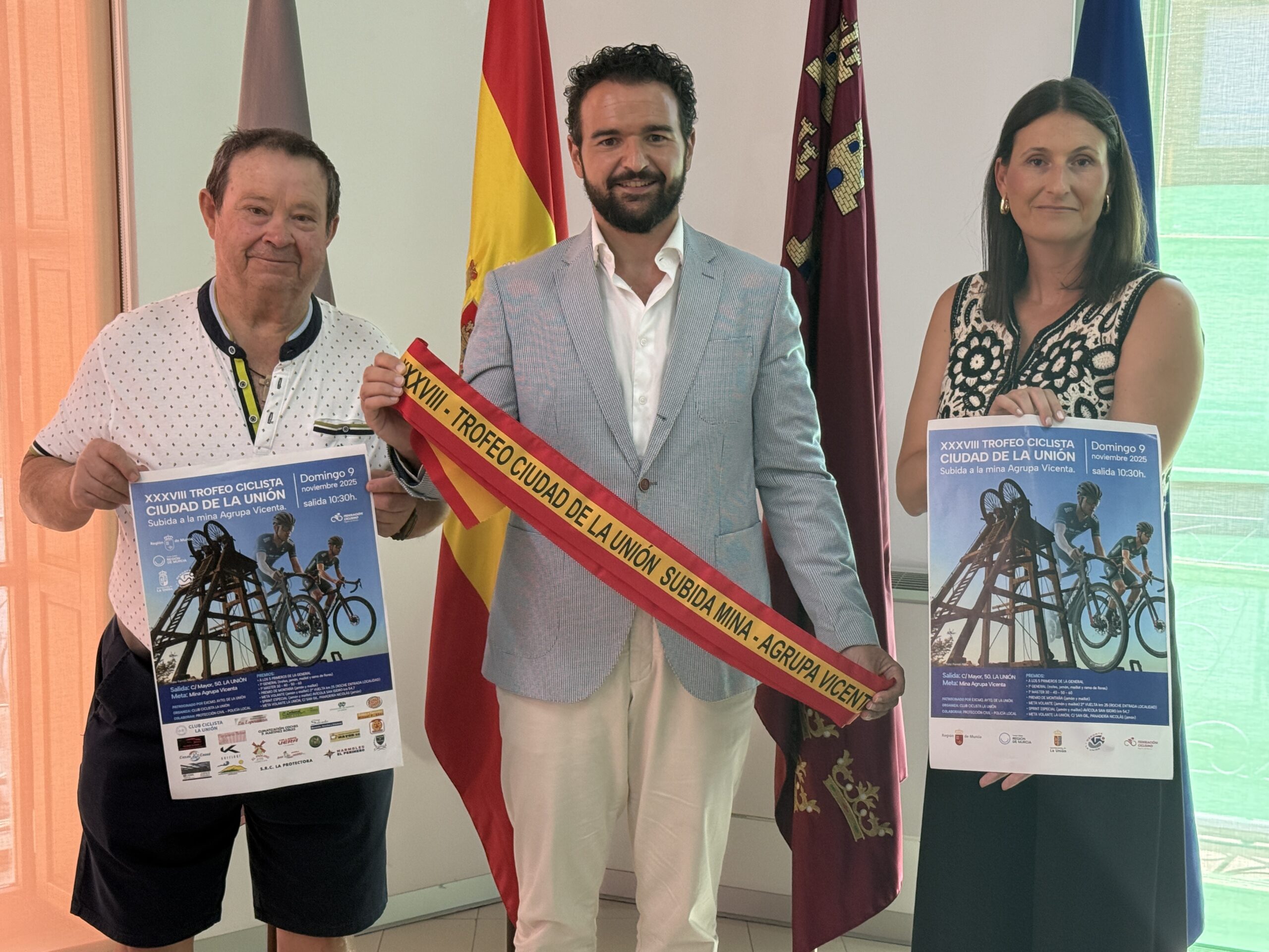 El alcalde de La Unión, Joaquín Zapata, acompañado por la concejal de Deportes, Aurora Ródenas, y el organizador de la prueba, José Ríos, han presentado una nueva edición del Trofeo Ciclista Ciudad de La Unión, que se celebrará el domingo 9 de noviembre de 2025 a partir de las 10:30 horas.