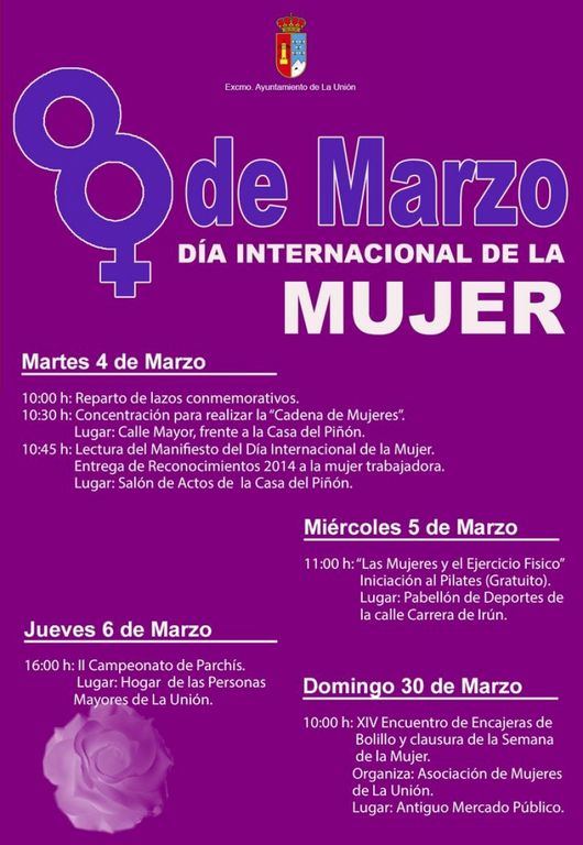El próximo sábado día 8 de marzo es el Día Internacional de la Mujer y, como todos los años, se van a organizar en nuestra localidad una serie de actos para conmemorar la efemérides.