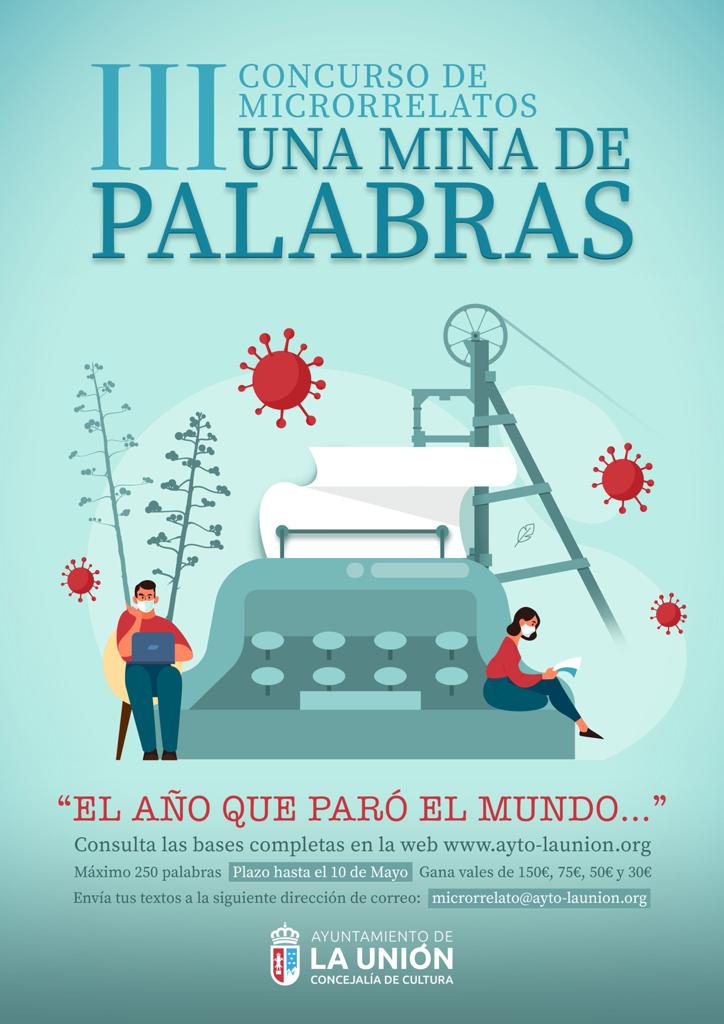 El Ayuntamiento de La Unión entregará el próximo sábado 12 de junio los premios del III Concurso Regional de Microrrelatos “Una mina de palabras” que esta edición ha tenido como frase de inicio de las redacciones a concurso “ El año que paró el mundo…” y cuya extensión máxima ha sido de 250 palabras.