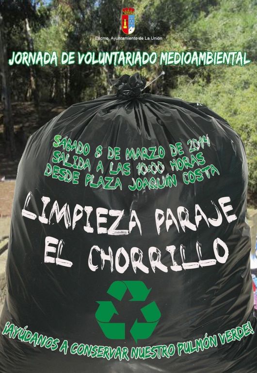 Como ya viene siendo tradicional a lo largo de los últimos años, el Ayuntamiento ha convocado una Jornada de Voluntariado Medioambiental para llevar a cabo la limpieza del Paraje El Chorrillo, que tendrá lugar el próximo sábado día 8 de marzo.