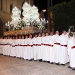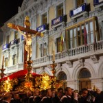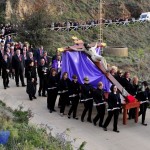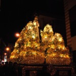 Los tronos se engalanan y desfilan entre oraciones y los ecos desgarradores de los cantaores participantes en el Concurso Nacional de Saetas que año tras año se celebra en ésta Procesión.