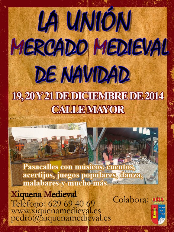 La Concejalía de Festejos que dirige María Hermógenes ha organizado para este fin de semana, desde este viernes al domingo 21, la celebración de un Gran Mercado Medieval con más de 60 puestos de artesanía y exhibiciones tradicionales, que en horario de 11:00 a 21:00 horas, creará ambiente navideño en nuestro municipio, invitando a todos los ciudadanos a que participen y disfruten de las actividades previstas.