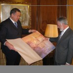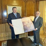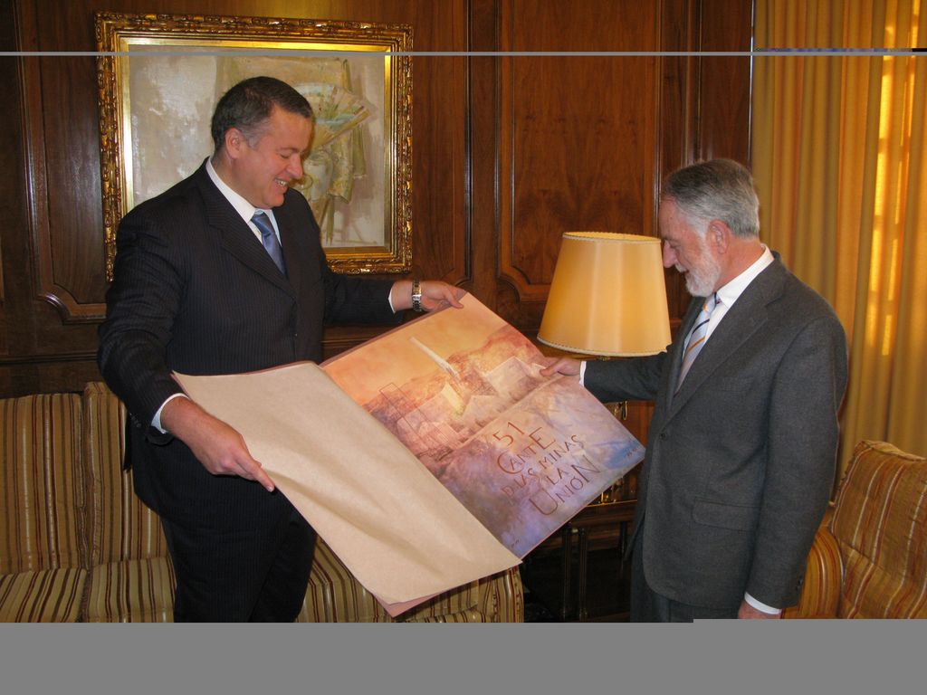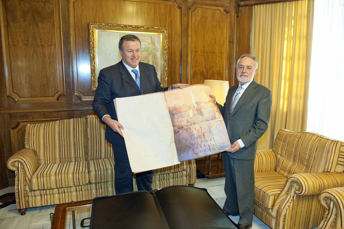 En el transcurso del encuentro nuestro Alcalde ha procedido a entregar a Celdrán una litografía del cartel anunciador de la pasada edición del Festival Internacional del Cante de las Minas, obra de Pedro Cano; asimismo, Bernabé le ha informado del reciente acuerdo del Pleno en virtud del cual el Presidente de la Asamblea pasará a tener una calle con su nombre en nuestro municipio.